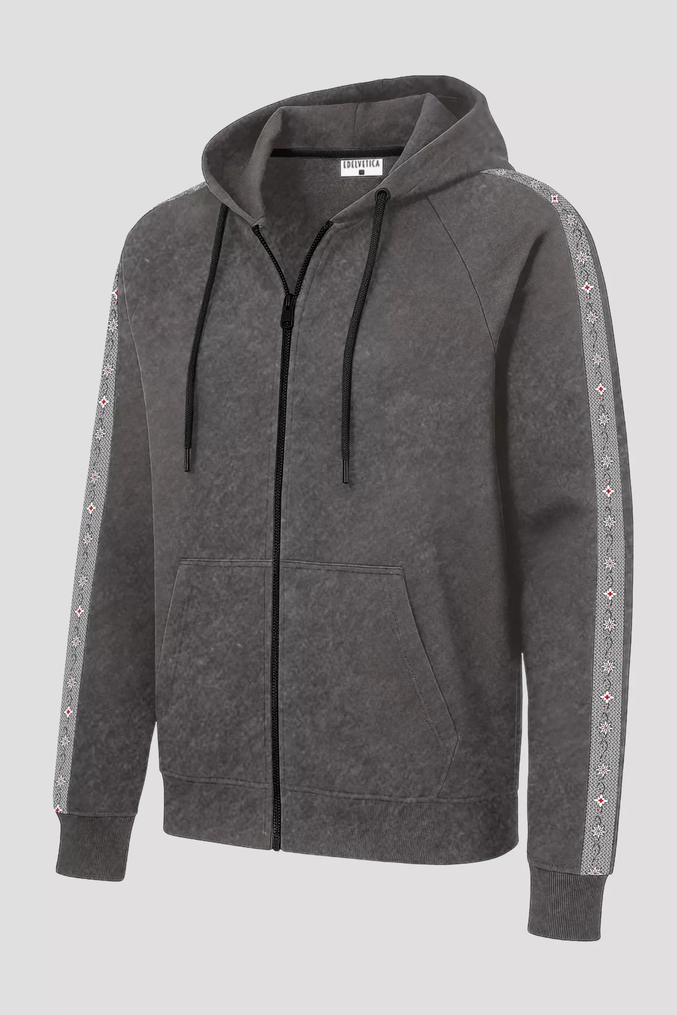 Das Edelweiss-Design dieser Sweatjacke wurde von uns eigens gezeichnet und verleiht der Jacke eine einzigartige und authentische Note. Jedes Detail zeugt von hoher Handwerkskunst und Liebe zum Detail.